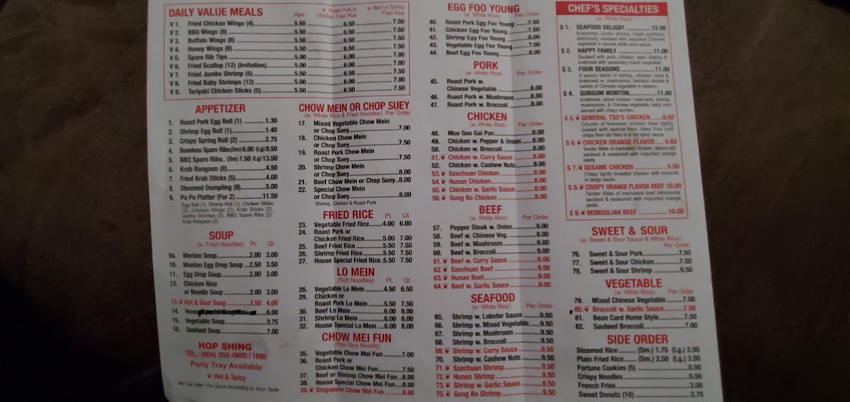 Hop Shing, located in Jacksonville, FL, offers a delightful dining experience with a focus on fresh, flavorful Chinese cuisine. Renowned for their General Tso's Chicken and crispy BBQ wings, patrons praise the consistency of quality and taste. Customers appreciate the generous portions and vibrant flavors, making it a popular choice for daily meals. While some have noted fluctuations in pricing and a few missed opportunities with sides, the charm of Hop Shing lies in its comfort food appeal and friendly service. This brand continues to be a beloved staple on the Eastside, keeping residents coming back for more.